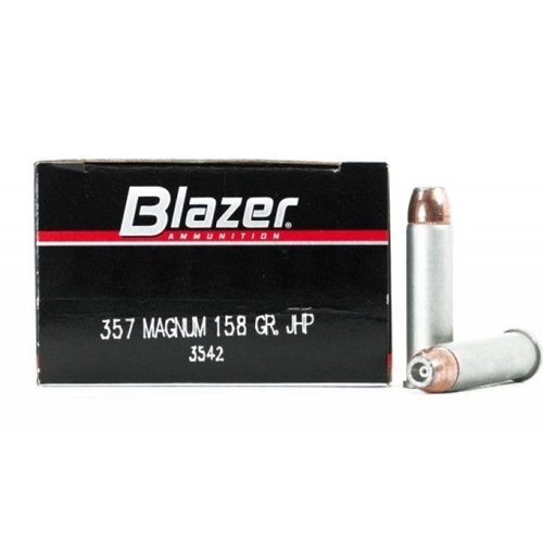 CCI Blazer 357 Magnum Ammo 158 Grain Jacketed Hollow Point ammo review offers the following information; CCI Ammunition is known among hunters and target shooters alike for delivering an explosive and accurate performance over and over again with incredibly reliable ammunition. For over 50 years shooters have counted on CCI for all of their rimfire ammunition needs, and CCI has always delivered. Developed with an aluminum casing this 357 Magnum by CCI Blazer is a great choice for training ammunition or plinking. With the power and presentation of many high priced ammunition on the market, CCI Blazer 357 Magnum promises the same quality at a more reasonable price. If you are looking for a dependable 357 Magnum training ammo at an attractive price, this CCI Blazer ammo is for you. CCI Blazer 357 Magnum ammo is non-reloadable. This jacketed hollow point ammo has a muzzle velocity of 1150 feet per second and a muzzle energy of 464 foot pounds. CCI designed this 357 Magnum ammo to be new production and feature aluminum casing and boxer primer, in addition to coated cases that help avoid corrosion. CCI 357 Magnum ammunition is packaged in a box of 50 rounds or a case of 1000 rounds for your convenience and is the perfect choice for an accurate shot every time!