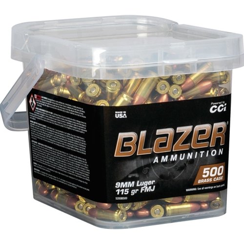 CCI Blazer Brass 9mm Luger Ammo 115 Grain FMJ 500 Round Bucket for sale online at cheap discount prices with free shipping available on bulk 9mm Auto ammunition only at our online store TargetSportsUSA.com. Target Sports USA carries the entire line of CCI ammunition for sale online with free shipping on bulk ammo including this CCI Blazer Brass 9mm Luger Ammo 115 Grain FMJ 500 Round Bucket.