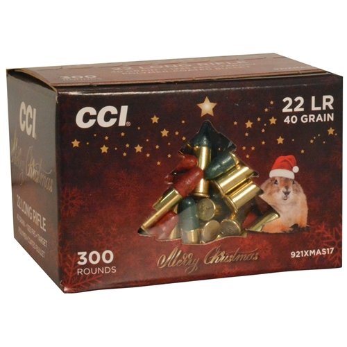 CCI High Velocity 22 Long Rifle Ammo 40 Grain 2017 Christmas Pack Red and Green Coated review offers the following information; Christmas came early this year with the help of CCI! Packed in a holiday themed box, shooters can enjoy CCI High Velocity 22 Long Rifle ammo. CCI High Velocity is accurate, match-grade ammo with a clean-burning propellant that helps keep semi-automatic actions clean for longer shooting sessions. Packed in a case of 300 rounds, these 22 LR rounds are coated in red and green to keep with the Christmas theme; making it an ideal stocking stuffer or gift right under the tree. CCI High Velocity ammo is loaded to the same velocity as CCI Green Tag and Pistol Match ammo but priced less to help keep shooter’s wallets fuller! CCI High Velocity 22 Long Rifle features a 40 grain Lead Round Nose bullet with a sub-sonic of 1070 ft/sec. CCI High Velocity 22 Long Rifle ammunition is great for plinking or competition training. CCI ammunition features a clean-burning propellant that helps keep semi-automatic actions cleaner for longer shooting sessions. CCI is known in the shooting industry as having reliable ammunition that provides excellent performance shot after shot! Delivering an explosive and accurate performance over and over again with incredibly reliable ammunition is what CCI Ammunition is known for among hunters and target shooters alike! For over 50 years shooters have counted on CCI for all of their rimfire ammunition needs, and CCI has always delivered. CCI offers a variety of inexpensive ammunition in almost every caliber, ideal for all shooters and fit perfectly for popular rifle, pistol and semi-automatic shooters. CCI works hard and makes sure that each round if loaded to supreme velocities for the best presentation. CCI 22 Long Rifle ammo is shooters best option for any type of 22 LR shooting events! CCI 22 LR is new production, non-corrosive ammunition featuring CCI Sure-fire primer and brass cases.