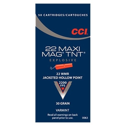 CCI Maxi-Mag 22 WMR Ammo 30 Grain Speer TNT Jacketed Hollow Point ammo review offers the following information; CCI Ammunition is known for among hunters and target shooters alike for delivering an explosive and accurate performance over and over again with incredibly reliable ammunition! For over 50 years shooters have counted on CCI for all of their rimfire ammunition needs, and CCI has always delivered. The Speer TNT Jacketed Hollow Point Bullet features a soft lead core and precision-drawn jacket that is fluted over 90% of its length. This design when coupled with CCI’s ammunition production capabilities creates a round that will deliver rapid expansion and complete destruction when a target is impacted. This round is a great choice for the shooter looking for a round that will explode everything from varmints to tin cans. This ammunition is new production and non-corrosive.