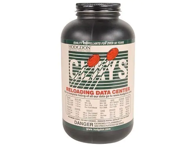Hodgdon CLAYS gunpowder has “taken the clay target world by storm”. It is the cleanest burning , most consistent 12 ga. 7/8., 1 oz. and 1 1/8 oz. powder available today, the preferred choice of competitive target shooters.. The superb burning characteristics of this powder produce soft, smooth recoil and excellent patterns. These features transfer directly to handgun applications where target shooting is the main goal. 45 ACP and 38 Special are only two of the cartridges where CLAYS gunpowder provides “tack driving” target accuracy with flawless functioning. Clays is a double based, flake powder.