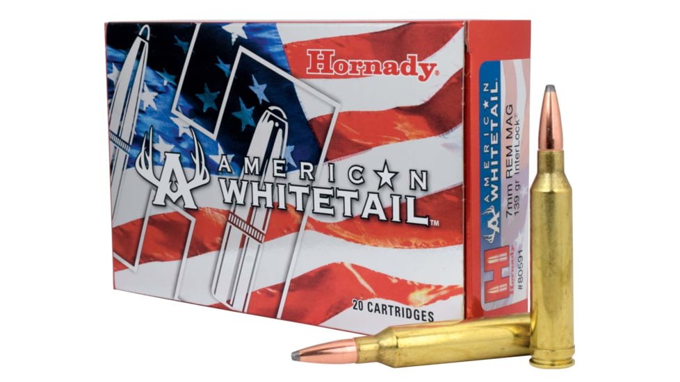Specifications for Hornady American Whitetail 7mm Remington Magnum 139 Grain InterLock SP Centerfire Rifle Ammunition: