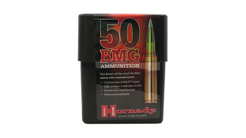 Specifications for Hornady Match .50 BMG 750 Grain A-MAX Brass Cased Centerfire Rifle Ammunition: