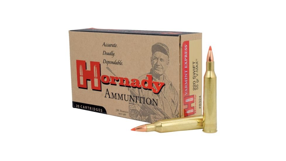 Specifications for Hornady Varmint Express .220 Swift 55 Grain V-MAX Centerfire Rifle Ammunition: