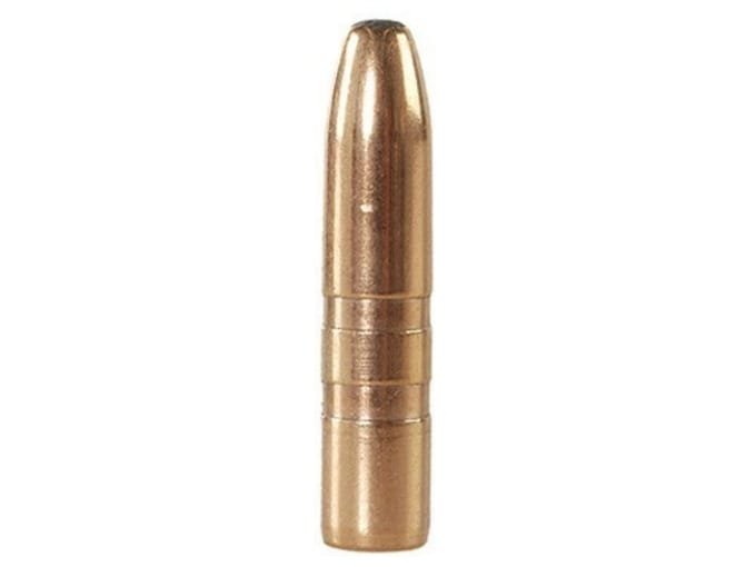 The jacket is substantially thickened at its middle section which arrests the mushrooming at precisely the right stage. The “step” farther inside the jacket holds the lead core within the jacket. This construction combines maximum weight retention (averaging 90%) and ideal penetration with superb accuracy.