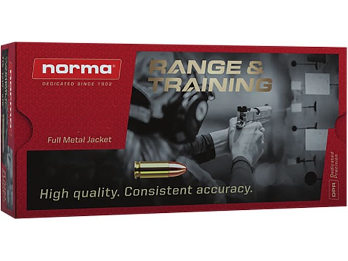 Made to be versatile enough for all shooters, Norma’s Range & Training FMJ Line is a perfect marriage of the quality that you expect from Norma, but at a price that allows you to shoot as often as you like. As Norma continues its mission of providing the best ammunition solutions on the market, Norma now sets its sights on Range & Training ammunition. Never settling for “good enough”, Norma’s line of Range & Training ammunition boasts consistency, reliability, and the excellent quality control standards that Norma is known for. This ammunition is new production, non-corrosive, in boxer-primed, reloadable brass cases.