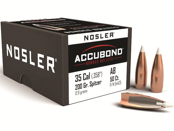 Nosler AccuBond Bullets 35 Caliber (358 Diameter) 200 Grain Bonded Spitzer Boat Tail Box of 50
