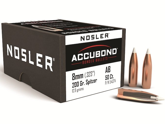 Nosler AccuBond Bullets 8mm (323 Diameter) 200 Grain Bonded Spitzer Boat Tail Box of 50