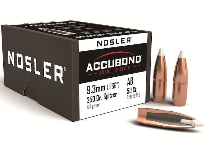 Nosler AccuBond Bullets 9.3mm (366 Diameter) 250 Grain Bonded Spitzer Box of 50