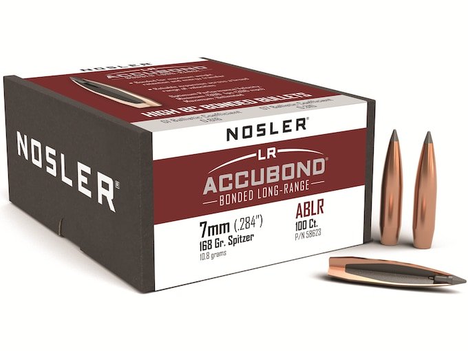 Nosler AccuBond Long Range Bullets 284 Caliber, 7mm (284 Diameter) 168 Grain Bonded Spitzer Boat Tail Box of 100