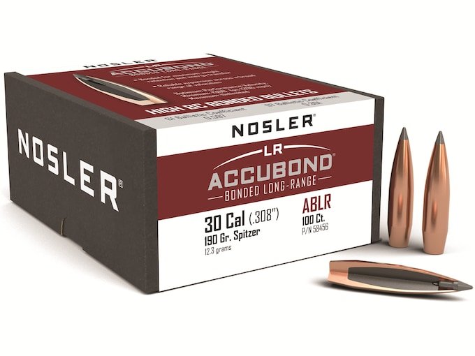 Nosler AccuBond Long Range Bullets 30 Caliber (308 Diameter) 190 Grain Bonded Spitzer Boat Tail Box of 100