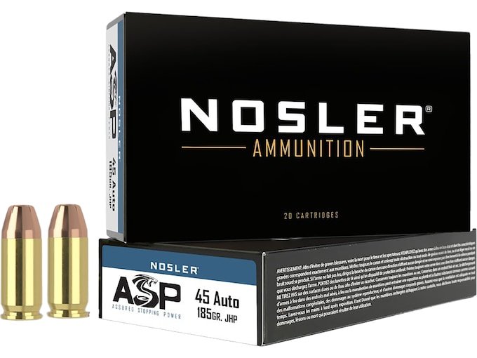 Nosler ASP Ammunition 45 ACP 185 Grain Jacketed Hollow Point