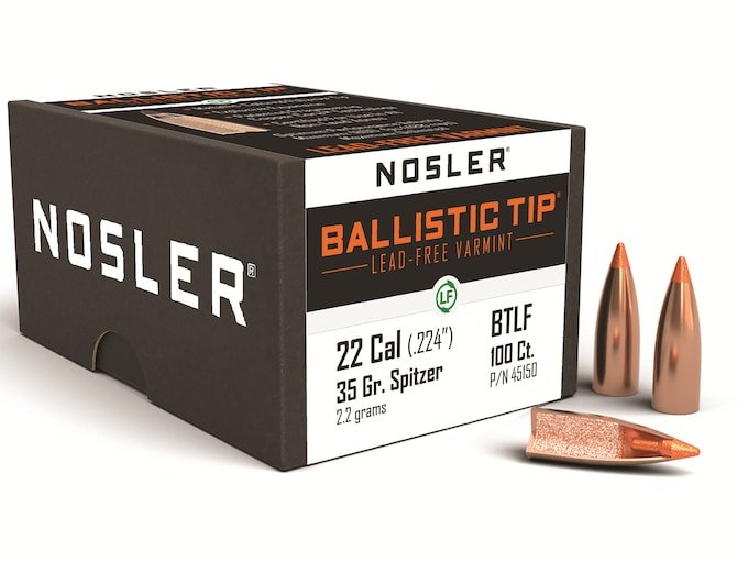 Nosler Ballistic Tip Varmint Bullets 22 Caliber (224 Diameter) 35 Grain Spitzer Flat Base Lead-Free Box of 100