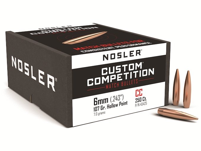 Nosler Custom Competition Bullets 243 Caliber, 6mm (243 Diameter) 107 Grain Hollow Point Boat Tail