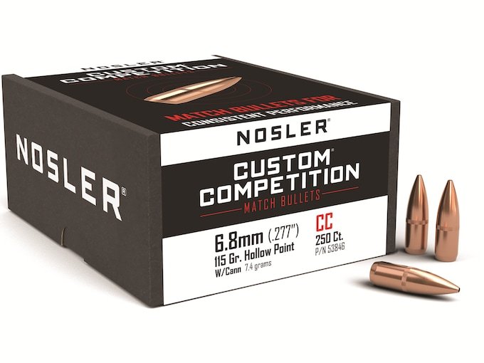 Nosler Custom Competition Bullets 6.8mm Remington SPC Caliber (277 Diameter) 115 Grain Hollow Point Boat Tail