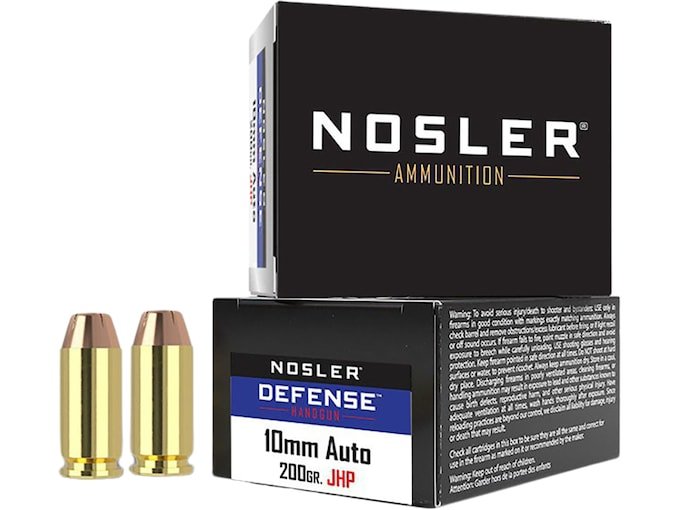 Nosler Defense Ammunition 10mm Auto 200 Grain Jacketed Hollow Point Box of 20