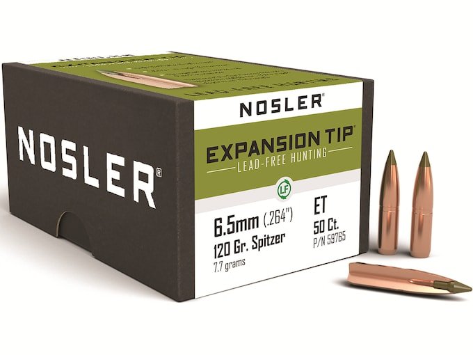 Nosler E-Tip Bullets 264 Caliber, 6.5mm (264 Diameter) 120 Grain Spitzer Boat Tail Lead-Free Box of 50