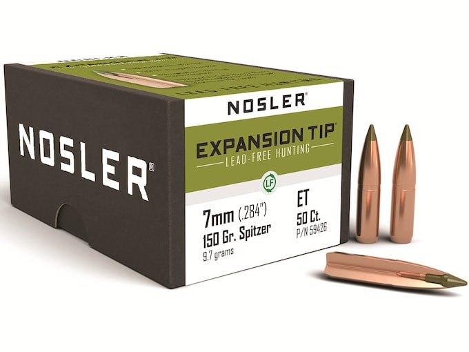 Nosler E-Tip Bullets 284 Caliber, 7mm (284 Diameter) 150 Grain Spitzer Boat Tail Lead-Free Box of 50