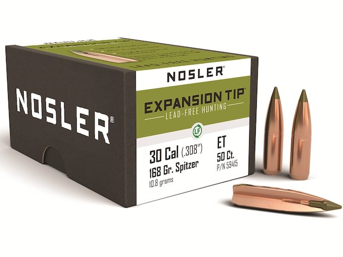 Nosler E-Tip Bullets 30 Caliber (308 Diameter) 168 Grain Spitzer Boat Tail Lead-Free Box of 50
