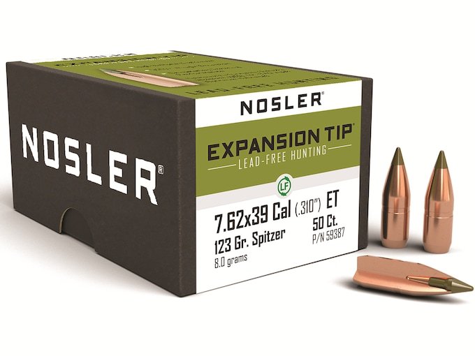Nosler E-Tip Bullets 7.62x39mm (310 Diameter) 123 Grain Spitzer Boat Tail Lead-Free Box of 50