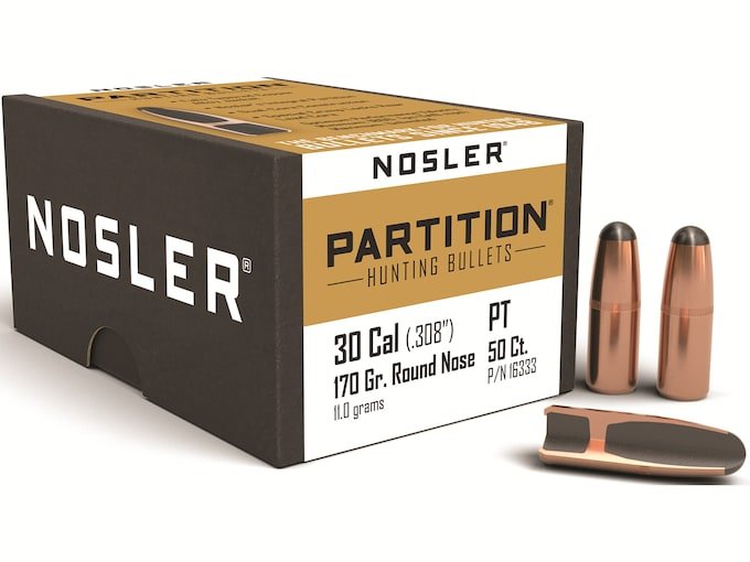 Nosler Partition Bullets 30-30 Winchester (308 Diameter) 170 Grain Round Nose Box of 50