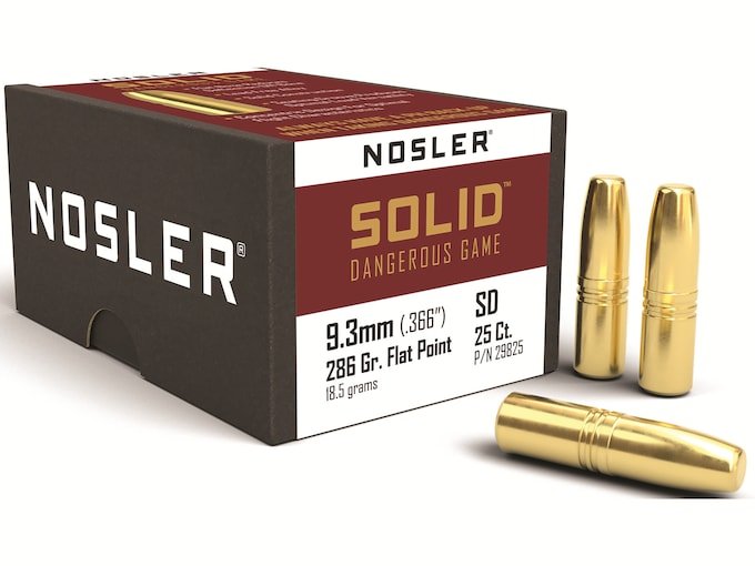 Nosler Solid Bullets 9.3mm (366 Diameter) 286 Grain Flat Nose Lead-Free Box of 25