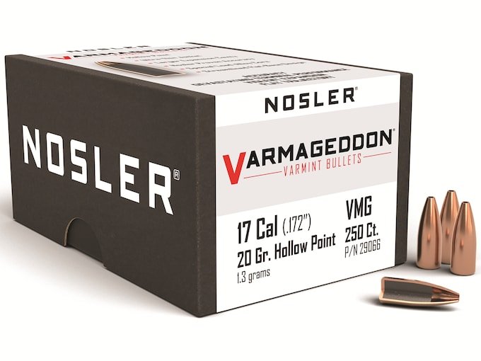 Nosler Varmageddon Bullets 17 Caliber (172 Diameter) 20 Grain Hollow Point Flat Base