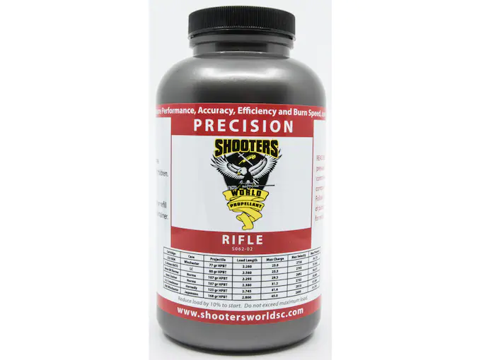 Due to its cleanliness of burn and incorporated flash suppressant, there is virtually no muzzle flash with Precision Rifle. Precision Rifle is a canister form of Explosia bulk and Lovex canister propellant S062.