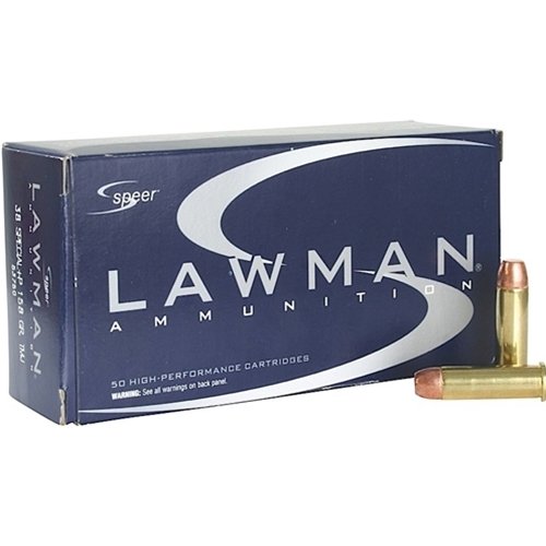 Speer Lawman 38 Special Ammo 135 Grain Total Metal Jacket ammo review offers the following information; Speer Lawman is remains the best choice and this is the best quality law enforcement on the market- period. Developed as a dual line for both law enforcement and sports shooters 35 years ago, the Lawman line has been earning its well-deserved status with its reliable, durable and superior preforming handgun ammunition. Speer Lawman completed its 38 Special ammunition to be Total Metal Jacket or orthodox Full Metal Jacket depending on the product. Settled in Lewiston, ID, Speer ammunition has been synonymous with safety for Law Enforcement for years and the Lawman line built the reputation line from the ground up! Without a doubt, Speer Lawman is remains the best choice and this is the best quality law enforcement on the market- period. This Speer Lawman 38 Special ammunition is loaded with a 135 grain Total Metal Jacket bullet. Speer Lawman completed its 38 Special ammunition to be Total Metal Jacket or orthodox Full Metal Jacket depending on the product. The Total Metal Jacket bullet is the perfect pick for target shooting, training, or out for the day plinking away at the range. Speer Lawman packages this 38 Special ammo in boxes of 50 rounds and cases of 1000 rounds. Order a case of bulk 38 Special ammo by Speer Lawman and receive free shipping on your order from Target Sports USA.